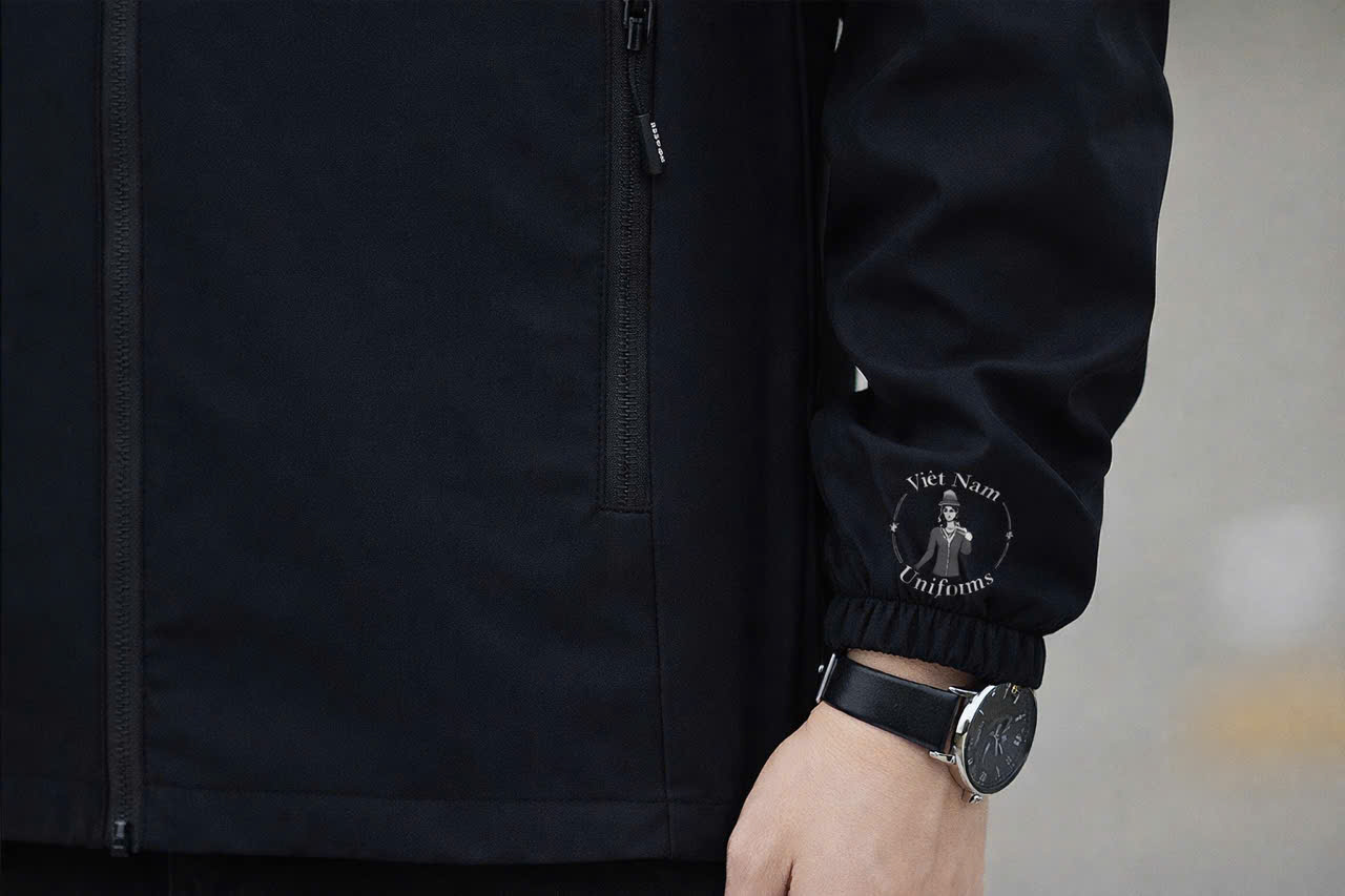 - Thiết kế hiện đại với mũ trùm đầu và logo “Việt Nam Uniforms” nổi bật, thể hiện sự đồng bộ và uy tín.