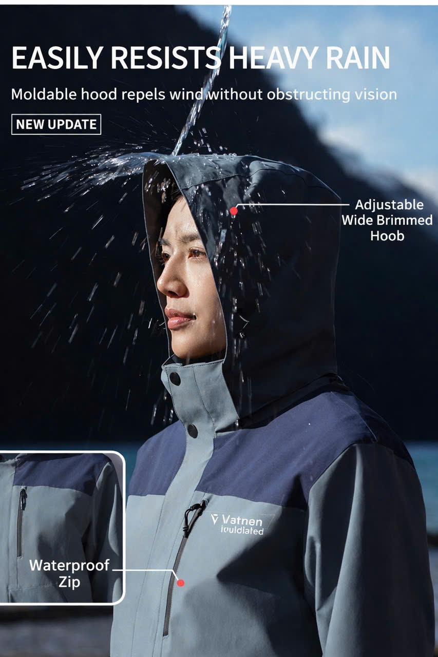 - Thiết kế mạnh mẽ với cổ cao và mũ trùm đầu, bảo vệ tối đa trong điều kiện thời tiết thay đổi.