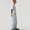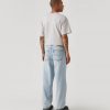 Đường may chắc chắn, có đinh tán (rivet) ở túi để tăng độ bền, màu xanh chàm (indigo).