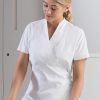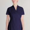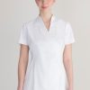 - Thiết kế chuyên nghiệp & Tinh tế:Thường là áo cổ chữ V, áo thun tay ngắn/lỡ, kết hợp với quần tây hoặc chân váy, tạo sự nữ tính, thanh lịch nhưng vẫn đảm bảo sự chuyên nghiệp, lịch sự.